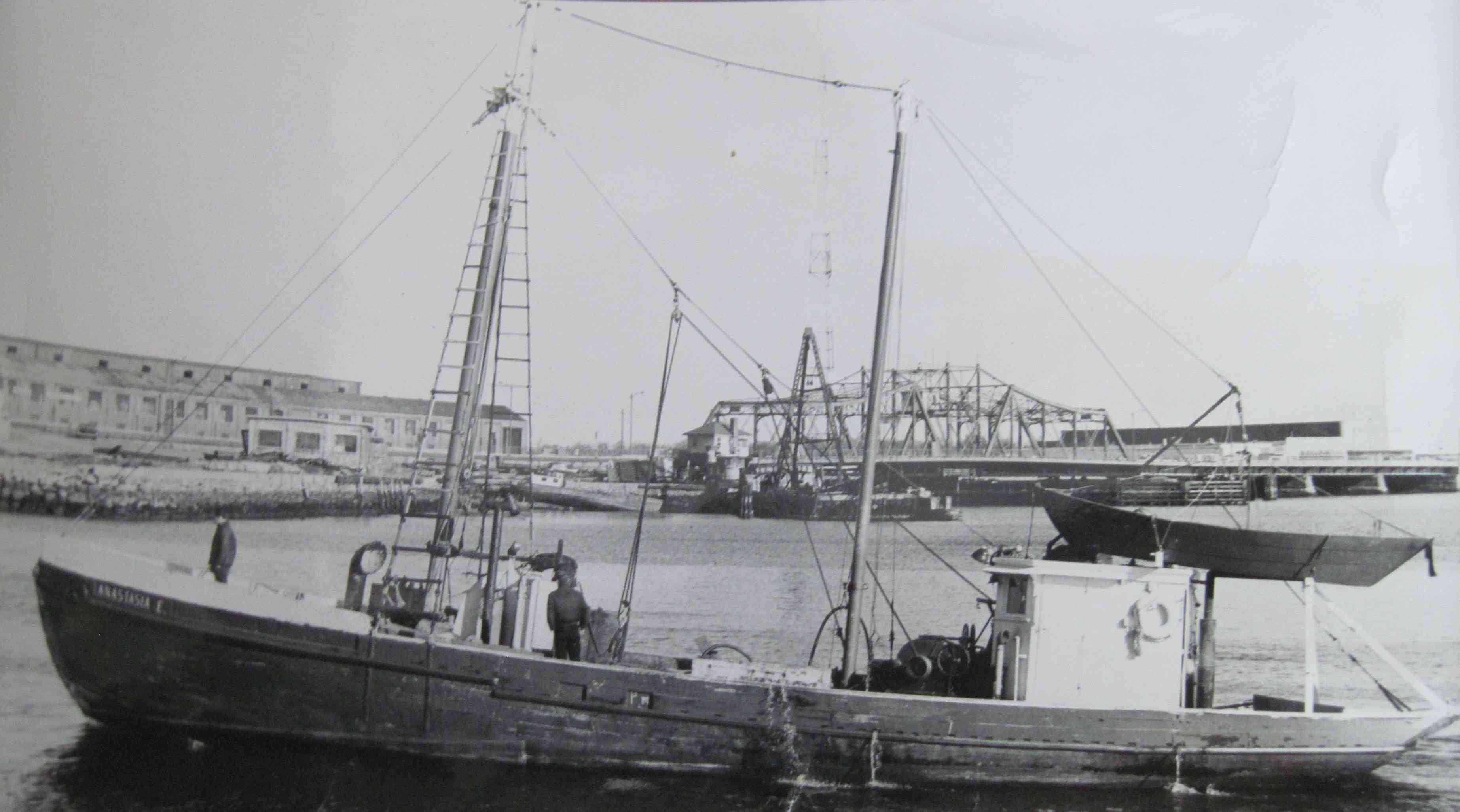 The dragger Anastasia E. was heading out of the New Bedford harbor before dawn when it struck a submerged object east of the Black Rock day beacon and sank. The crew boarded a dory, but the smaller boat was overloaded. Captain Richard E. Sherman ordered the men to get out of the dory and hold on to the sides to lighten it. To lighten it further, he swam to a nearby buoy. A small Coast Guard vessel rescued Captain Sherman and then went to pick up the three men clinging to the dory. Crew members Herbert Spinney and William Stekowsky survived. The cook, Lars S. Langedal, was unable to hold on to the dory and slid under the water. A Coast Guard rescue swimmer tried unsuccessfully to revive him.