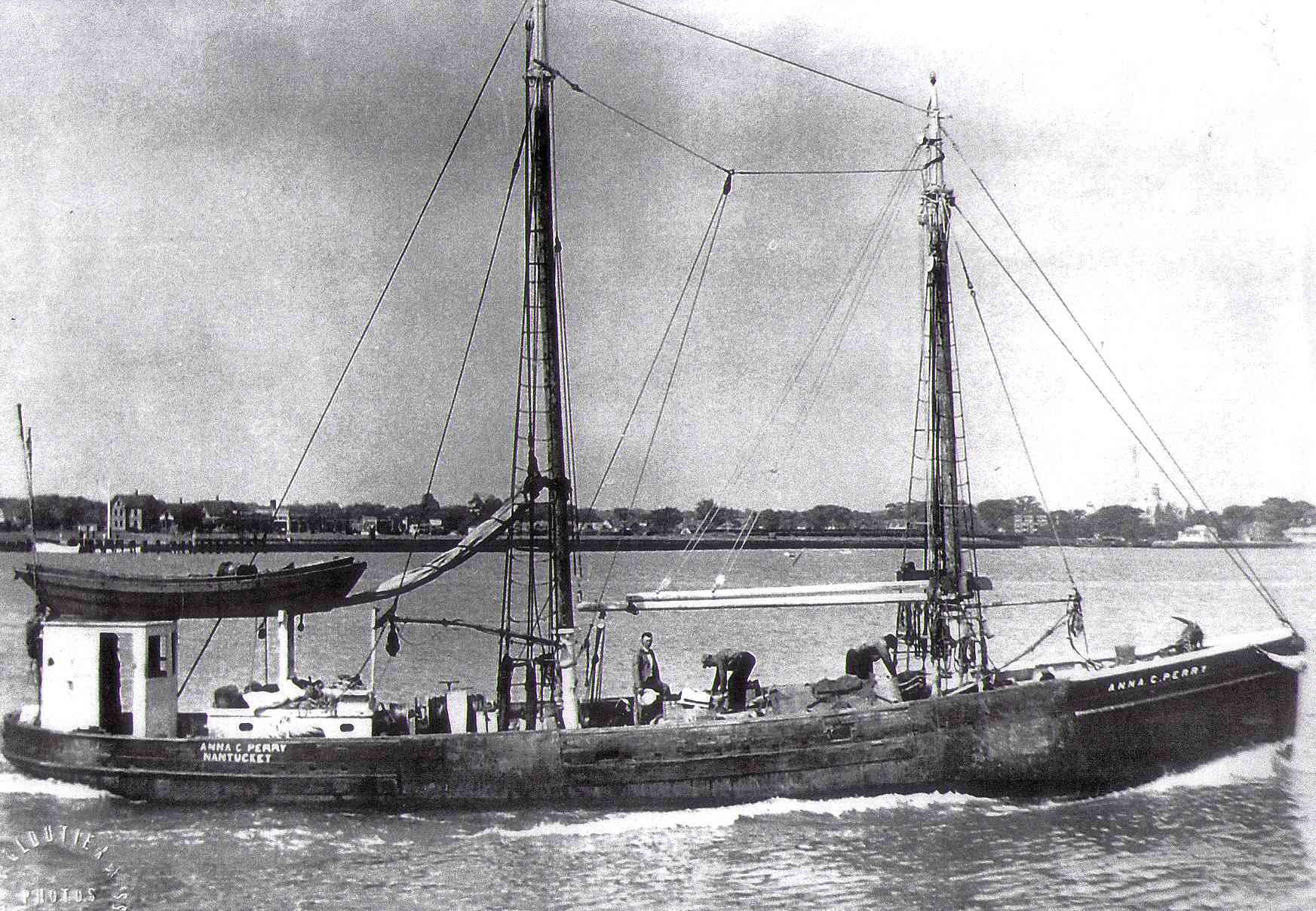 The dragger Anna C. Perry left New Bedford on March 6, 1952, to fish near the Nantucket Lightship. With 8,000 pounds of fish on board, she set out for home on March 11. At 11 a.m. the vessel reported that she was "running good," but at 3 p.m. an attempt to radio the ship failed. On March 13, she was reported overdue, and the Coast Guard began a search. Four planes and the cutter Acushnet searched an area of 12,000 square miles centered 65 miles southeast of Nantucket. One plane spotted some floating debris, but it was unidentifiable. The search was discontinued on March 15.